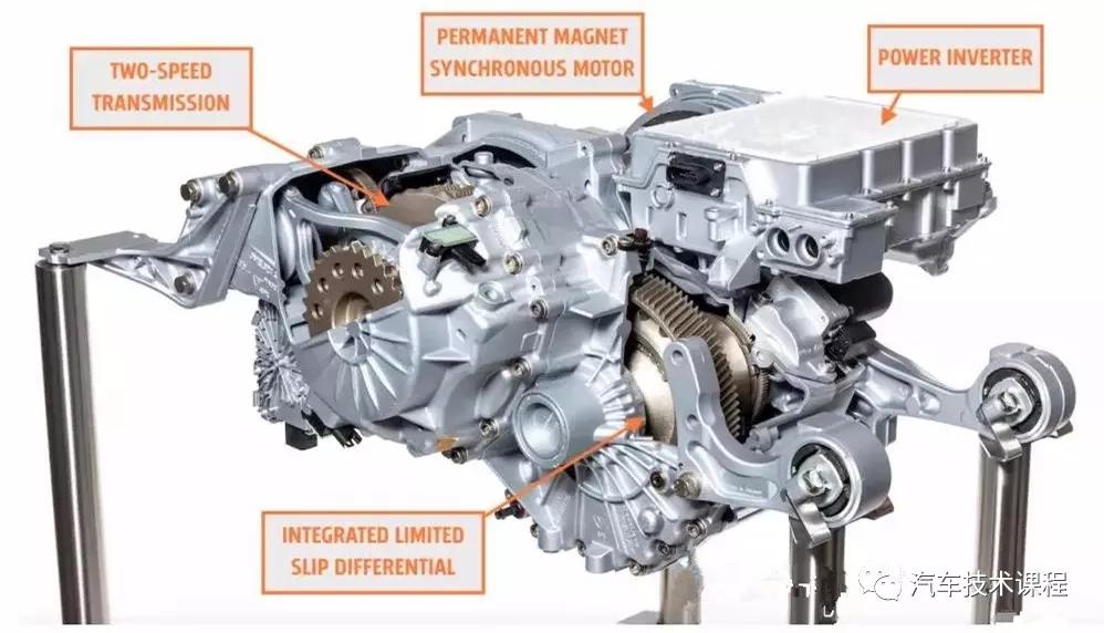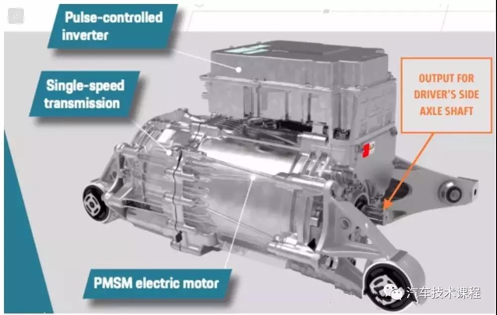 与捷豹i-Pace雷同,单速先驱模块也同样吸引人,它采用了同轴变速器策画。变速器直接用螺栓固定正在电机的端部,电机位于前轮之间的轴中央线上。毕竟上,个中一个前等速轴现实上通过电机转子的中央钩住变速器。