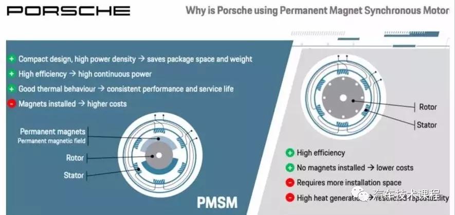 Taycan前后采用永磁同步电机,后电机动力更强供给449马力,406 lb-ft(550Nm,但turbor S能供给到450lb-ft – 610Nm),永磁同步电机相看待感触电机(tesla 采用感触电机)他的上风是高效(中低速更昭着),体积小,更好的散热本能但价值相对高。