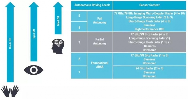 (图 6)全自愿驾驶车辆首要依赖 360˚ 检测,需求运用前辈的雷达、激光雷达、摄像头、惯性衡量单位和超声波传感器