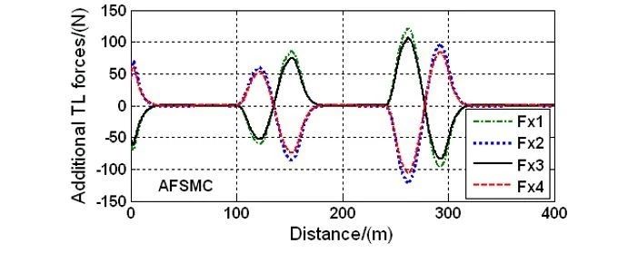 图13暗示转向角的反映结果。可能展现,正在途径的弧线片面中由所提出的掌握器掌握的转向角的幅度转化比LQR掌握器的小。图14显示了外部横摆力矩的反映结果,可能看出由所提出的AFSMC方式掌握的外部横摆力矩的振荡远小于LQR方式。图15和图16示出了所提出的掌握体系和LQR掌握体系的四个附加轮胎纵向力的反映结果。它们解释,所提出的PI掌握分派法可用于取得更好的分派结果。
