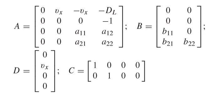 车辆横向动力学方程(1)与轨迹跟踪动力学(2)相团结,变成具有不确定性和外部扰动的众输入众输出(MIMO)线性体系,可暗示为: