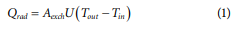 式中:Qrad为热交流量,Aexch为散热器内部传热面积,Tout为散热器出口冷却液温度,Tin为散热器进口冷却液温度,U是传热系数。U由等式(2)谋划: