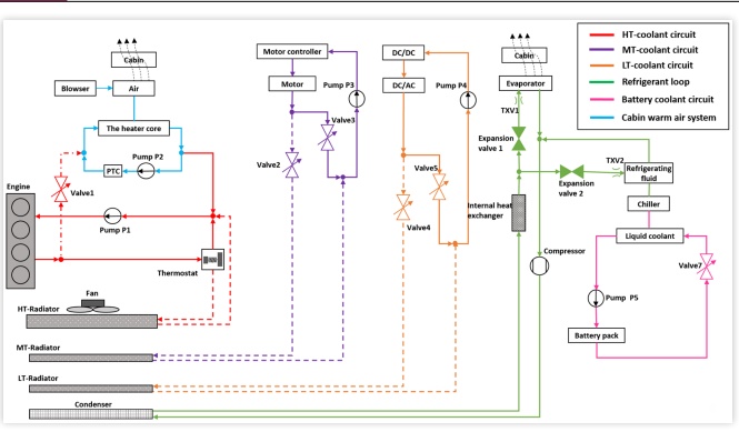 集成TMS专为并联PHEV策画,包罗HT冷却剂、MT冷却剂回途、LT冷却剂回途、制冷剂回途和电池冷却剂回途。