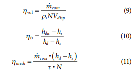 此中:mcom是制冷剂质地流量,N是压缩机转速,ρs是吸入密度。Vdisp是压缩机排量。hs是吸入比焓。hdis是等熵放电比焓。hd是排放比焓。τ是压缩机输出扭矩。膨胀阀是可变面积减省阀。流经膨胀阀的制冷剂质地流 量由式(12)表现: