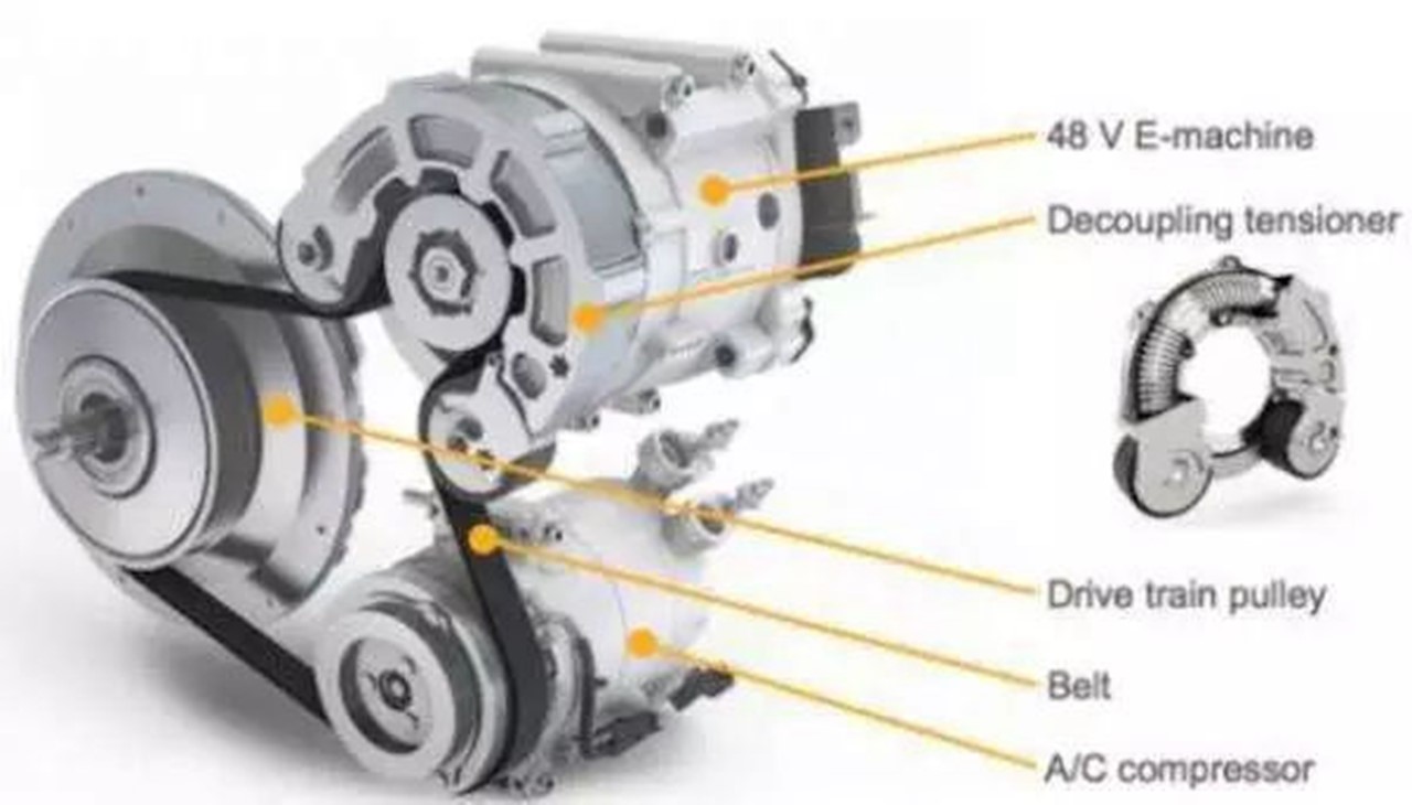之前众人所明白的48V体系紧要是P1构造的轻混,即用BSG动员电一体机代庖古代起动机和发电机,正在车辆起步和加快时供应分外的力矩,减速制动时接管能量。较少涉及到传动体系的电气化,自然也无法达成纯电行驶。
