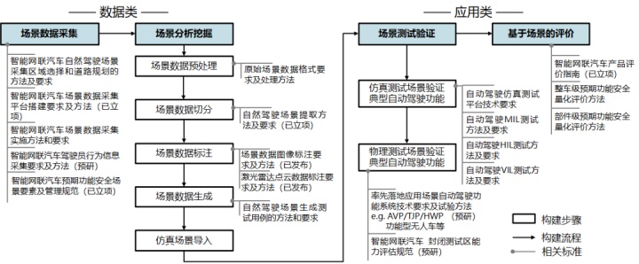 如图2,定约依托中国汽车工程学会(CSAE)集体圭表平台,以测试树模、预期性能安好、革新利用等合系就业组为支持,展开场景数据搜罗区域选拔、搜罗平台、搜罗践诺手法等场景数据搜罗圭表,数据预治理、场景提取、数据标注、场景天生等场景数据解析发掘圭表,以及仿真测试场景、物理测试场景验证、基于场景的评判等场景利用类圭表需求解析、圭表子编制搭修及重点环节圭表项目研商拟订,并接连更新至《智能网联汽车集体圭表编制开发指南》313预期性能安好、330测试评判与树模引申等合系片面。
