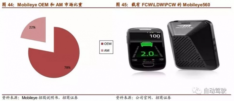 现阶段前后装市集比例大于 4:1,后装产物利用仅限于预警层面。目前主动安一共例仍聚合于前装市集,正在智能驾驶前十位一级供应商中,唯有三家同时涉及前后装市集生意。以 Mobileye 为例,其 2013 年的营收中,有 78%来历于 OEM 市集,仅 22%来历于后装市集。后装市集重要再现正在商用车的利用、保障公司、车队等。后装市集因为未获取主机厂商的通信公约许可,无法切入到 ADAS 中枢的履行层面,所以效力更众限度于预警界限。