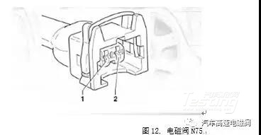 拆下电磁阀N75的导线插头,然后把二极管试灯串接正在端子1和2之间,并启动实践元件的诊断功用,触发电磁阀N75,二极管的试灯应闪亮。