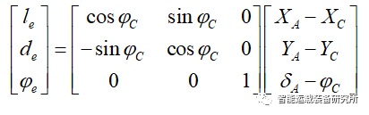 图3 车辆道途相对处所闭连正在车辆坐标系xoy下,可取得点A与车辆质心的处所谬误及宗旨谬误,其相对处所几何闭连有: