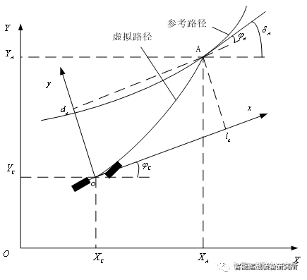 此中,u(t)为限制器限制量,Kp为限制器比例项系数,Kd为限制器微分项系数,Ki为限制器积分项系数,e(t)代表企望值与实践值之间的谬误。2.车辆-道途相对处所闭连假设车辆预瞄前哨道途上一点A,它正在惯性坐标系下的坐标为,到点A参考途径弧线的切线宗旨与车辆坐标系x轴夹角为,车辆质心处所为,车辆坐标系x轴线与X轴夹角为,如图所示。