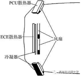 某型燃料电池汽车采用了散热器离开安插的体例,如图2所示。它采用两个散热器顺序安插正在进气隔栅后面;同时探究到若将冷凝器安插正在散热器后面将遭遇空间缺乏的题目,气氛正在原委散热器后曾经有很大的温升,此时行动冷凝器的进气曾经不太适合,于是将冷凝器安插正在侧面。