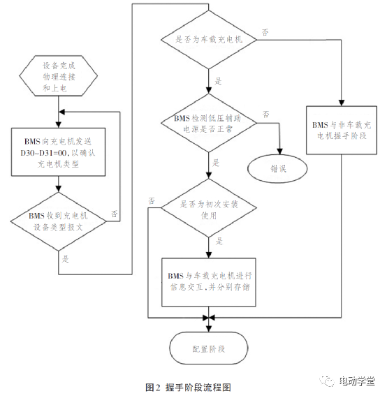 握手紧要杀青电池执掌体系对充电配置的识别,此阶段紧要是确定所接入的充电配置是车载充电机还口舌车载充电机,以便拔取相应的通讯制定,并为充电主回途的接通做好铺垫。配置识别阶段流程图如图2所示。