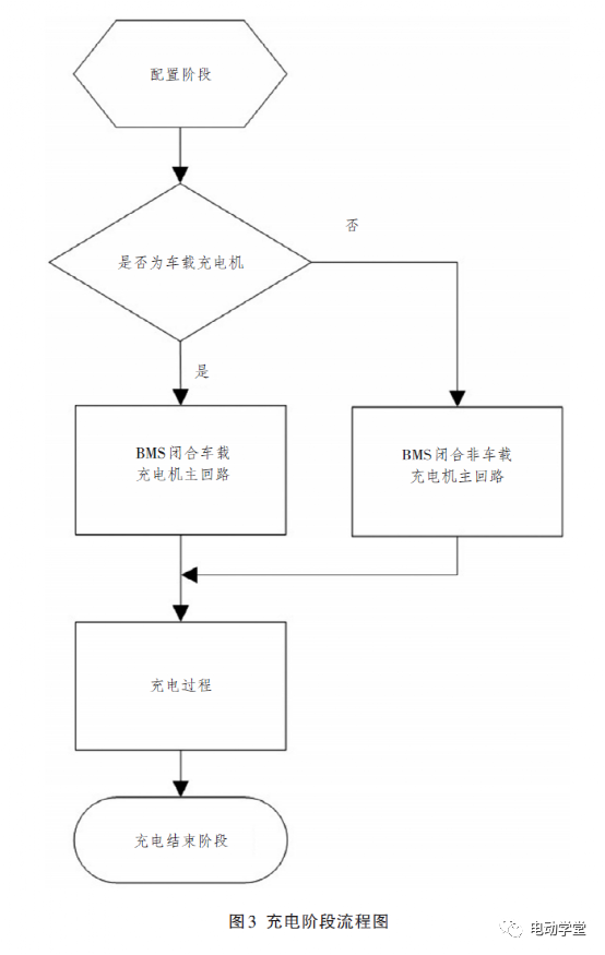 由于电动汽车充电体系中存正在车载和非车载2个2类充电机,是以充电体系的主回途分为车载充电主电途和非车载充电主回途,硬件体系需求为2个主回途分辩筑设继电器通/断电途,当个中一种充电机接入体系中时,电池执掌体系统制相对应的继电器闭合以使主回途导通,实行电池组充电。图3为充电阶段流程图。正在动力电池包充电杀青时电池执掌体系最先需求开释相应的继电器来断开充电机的主电途一面。