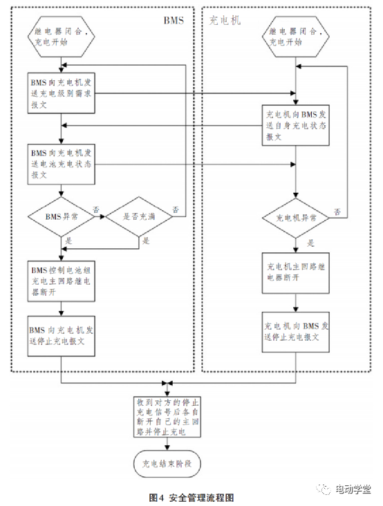 图4中,BMS与充电机之间音讯通报都需求恭候吸取剖断,倘使对方体系长光阴没有收到通讯数据,则体系超时,通讯障碍,倘使体系正在规则光阴内收到对方音讯,则通讯连续举行。