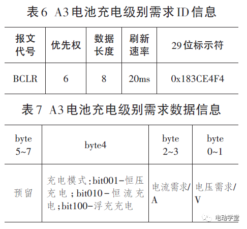 因本文打算的车载充电战略及制定与非车载充电之间区别之处紧要正在A1-握手阶段、A3-充电阶段(充电进程及安乐监控)。下面本文将对A1-握手阶段、A3-充电阶段和A5-障碍形态举行蕴涵ID音讯和数据音讯的完全系定的定制,而对A2-筑设阶段、A4-充电竣事阶段的制定举行ID音讯的定制。