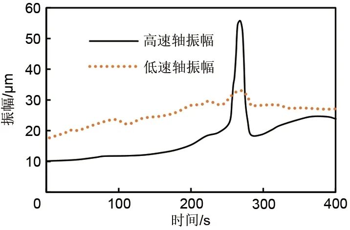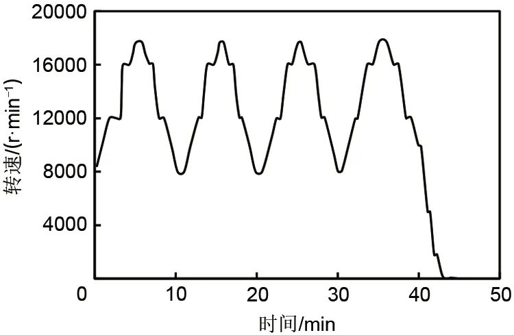 试验中,高速轴转子正在14000 r/min驾驭崭露了振动峰值,为了验证振动峰值崭露是否具有无意性,正在14000 r/min相近实行了4次起落速试验,起落速弧线次起落速经过中,转速的转折局限均为8000~17600 r/min,起初转子从8000 r/min升速至12000 r/min,中断1 min后,分裂以20、30、40和50 s差别的升速速率加快到16000 r/min,中断1 min后,无间擢升转速至17600 r/min,运转1 min后先导降速。