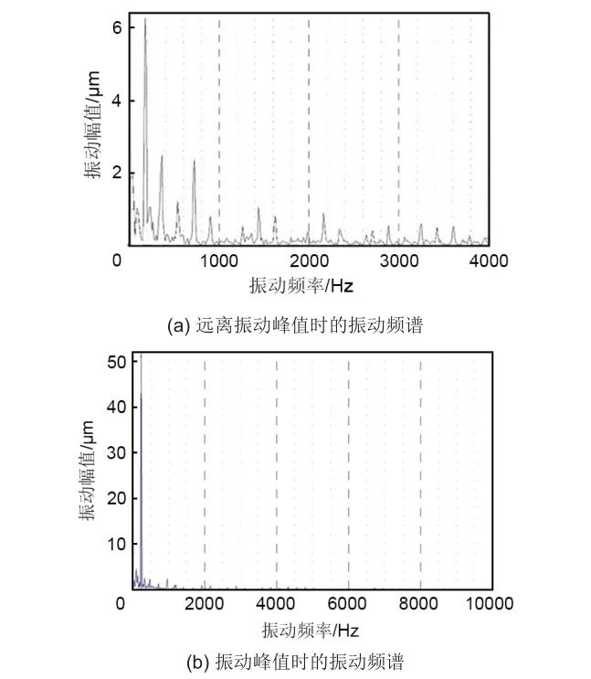 图 9 升速经过中振幅转折弧线给出了转子正在远离振动峰值转速和振动峰值转速时的振动频谱图。正在差别转速下,一倍频振幅永远攻克主导地位,然则正在振动峰值时,一倍频攻克的比例明显普及。正在10800 r/min时,1倍频的振幅达约为6 μm,此中0.5、2和4倍频也分裂有2~3 μm的振幅。当转速抵达14200 r/min时,1倍频振幅抵达了52 μm,增进了快要9倍,0.5倍频振幅为4 μm,其它倍频振幅均正在3 μm以下,增进幅度不足一倍频增进幅度的5%。可睹,正在转子转速靠近14200 r/min时,1倍频振幅会激烈补充,其它倍频的振幅也会有补充,然则补充的幅度远小于1倍频的补充幅度。