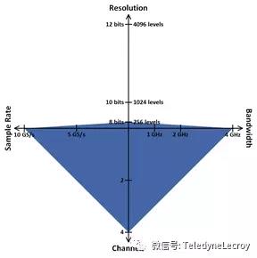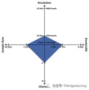 图1所示的雷达图是一种旁观这个的轻易方式,图中有四个分歧的坐标轴,判袂对应上述提到的各个目标(离别率,带宽,通道数和采样率),离别率显示为位和ADC电平,其比例与ADC电平成线 -雷达图表用于懂得示波器标称目标的互相影响