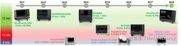 目前大大都示波器厂商现正在都正在执行标称具有高清或高离别率的示波器,图5显示了种种高离别率示波器产物线以及它们向商场宣布的大致时分表。