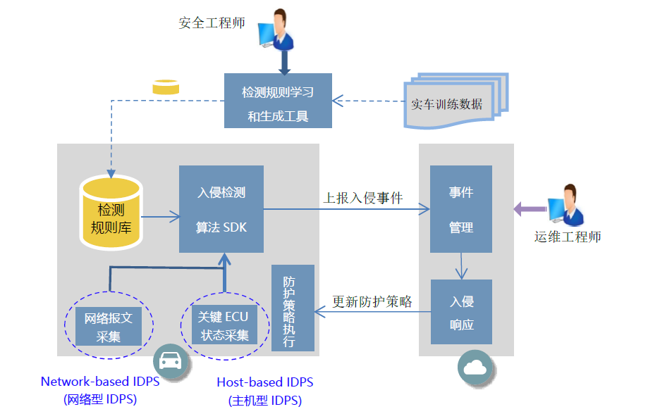 纯正的静态防御工夫缺乏精巧性和针对性,不行很好地管理车辆所面对的安定胁制。车辆入侵检测与防御体系IDPS(Intrusion Detection & Prevention System)将安定防护的核心放正在对车辆此刻状况的安定检测和动态反响上,即按照实质检测出的攻击事故,实行针对性的安定防御。