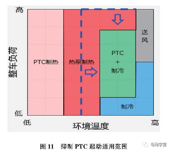 如图11所示,依照我国驾驶境遇与驾驶民风,通过实车春、秋季途况,并模仿高湿度、满员下的车室内境遇,正在倾轧车窗起雾危急的同时,将PTC表面需起动局限(图11蓝框局限)大幅缩小,极大范围胁制PTC的操纵,尽大概发扬热泵空调的制热作用,淘汰春、秋季空调制热的电能打发。