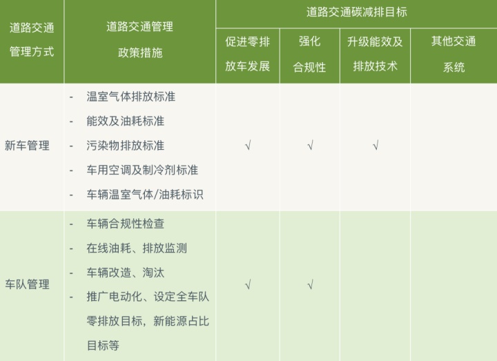 纵览环球,有一系列目下现行的,或他日可行的机动车处理计谋程序可以助助咱们杀青这些宗旨。这些机动车处理计谋要紧分为新车处理、车队处理、交通管控、车用燃料处理以及经济及勉励计谋五大类,掩盖了从能效和排放圭表规矩、增添电动化,到低碳燃料、明净电网,再到财税补贴、罚款等诸众计谋。这些计谋能够从区别的角度增进减排宗旨的完毕。比方厉苛的能效圭表、排放圭表可以强制车企到达相应的二氧化碳、黑炭、N2O的减排宗旨,同时增进合规性以及技巧升级。零排放车辆占比宗旨设定会条件企业务必强化零排放车辆的分娩与发售。可再生燃料圭表条件燃料供应商供给更明净低碳的燃料等等。