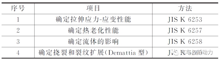咨询职员采用表1中所列的测试措施丈量了质料的力学本能并咨询了境遇的影响。因为恳求新开拓的质料具有与而今质料类似的境遇包容性,咨询职员通过以下几个方面举办了评议:(1)热老化本能(指守时分段内的改日启发机温度条款);(2)耐油性(基于JISK6258测试措施,采用IRM903准则,指守时分段内的温度为150 ℃);(3)燃料耐油性(基于JISK6258测试措施,采用燃料C,指守时分段内的温度为90 ℃);(4)耐酸性(正在指守时分段内,浸入指定浓度的硫酸、盐酸、硝酸、醋酸和甲酸等溶液中后,正在60 ℃下举办3个干燥轮回);(5)VQM外层附着本能;(6)抗弯曲疲困性。咨询职员为评议正在受硫化粘合影响的FKM和VMQ试件,举办了拉伸试验(频率25 mm/s),并斗劲展示裂纹的轮回数。