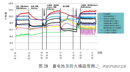 往往处理零部件热害题目,起首研商增加隔热罩,经与项目组洽商,可增加蓄电池包裹罩、防火墙隔热罩实行仿真优化与试验验证理会,个中仿线 热平均搭载温度场试验本次正在公司处境舱实行热平均试验宗旨是评议热平均形态下的冷却编制功能与唆使机舱热负荷形态、温度场理会中存正在的热害危急点,对前期的一维冷却编制理会与温度场仿真理会实行验证。本次试验应用K 型热电偶衡量各温度测点,本文厉重评释蓄电池增加包裹罩前后、中通道隔热罩增加前后的温度测点对照及散热器进水温度测点;通过装置正在散热器迎风面的叶轮风速仪来衡量冷