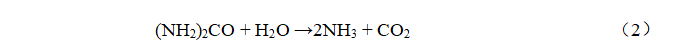 (2)尿素水解。尿素溶液正在热解后天生的气相 HNCO,正在进入催化剂后,将正在催化剂轮廓产生水解反响,天生气相的NH3和CO2。反响方程式为: