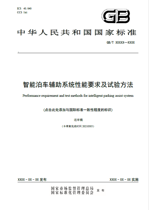 《智能泊车辅助体例功能央浼及试验门径》是由中国一汽牵头草拟的举荐性国家圭臬,实质涵盖具备横向节制和横、纵向组合节制的泊车辅助成效,为行业现阶段平常使用的泊车体例供应圭臬支持。