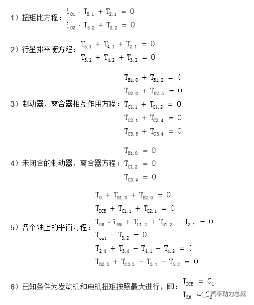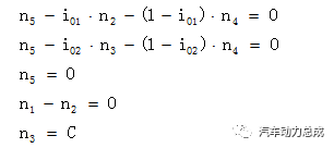 此中C代表常量,此处n2的转速由电机的输出转速和iEM的比值确定,上述方程是一个线性方程组,如下解之: